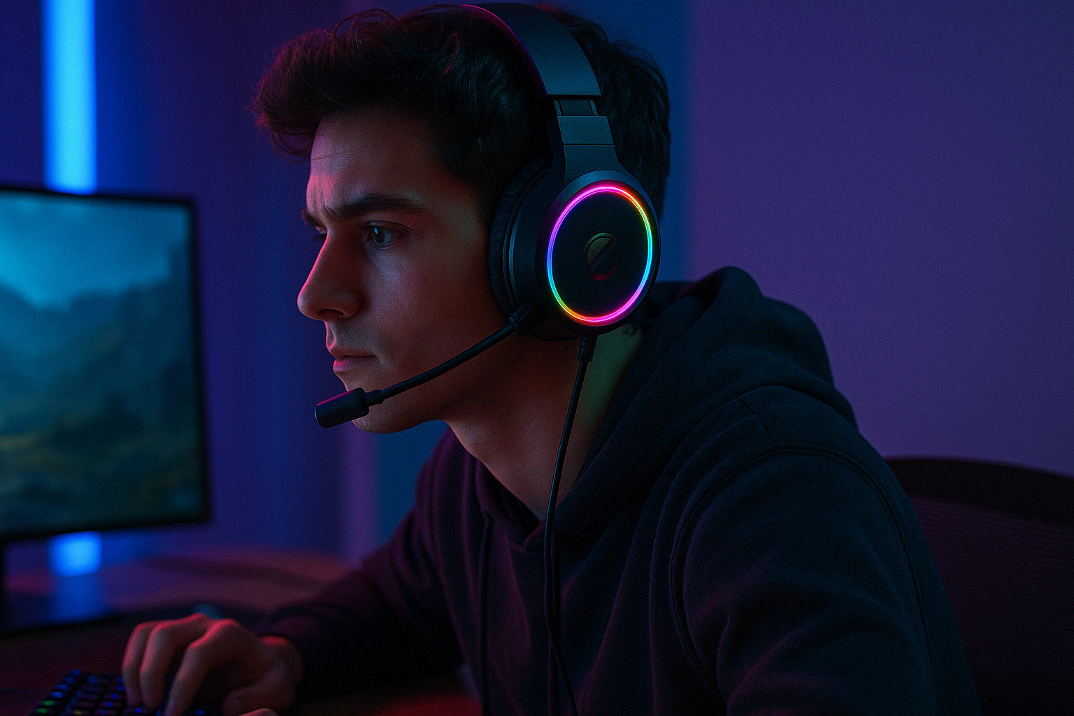 Audífonos Gamer con RGB | Sonido Envolvente + Micrófono ENC